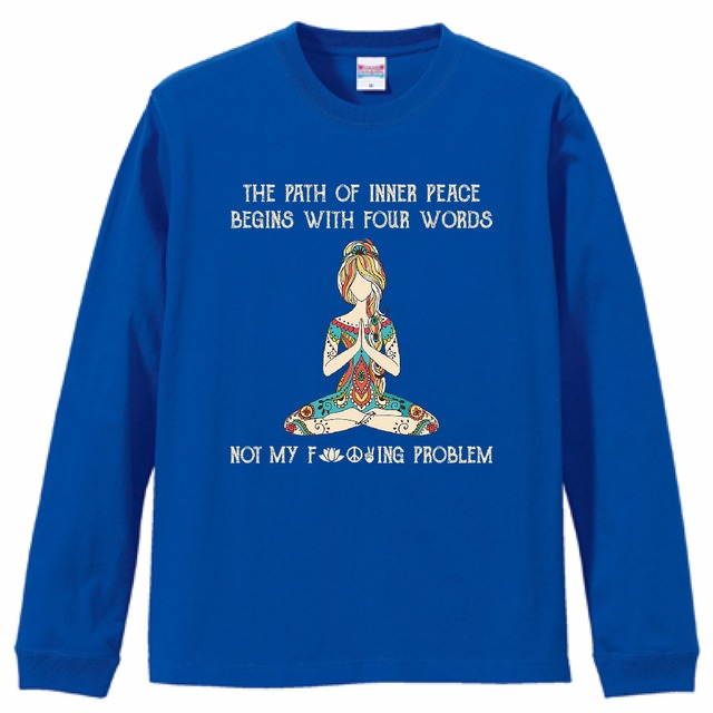 ヨガ長袖Tシャツ|The Path of Inner Peace|癒し・スピリチュアル・ボヘミアンデザイン|ロイヤルブルー