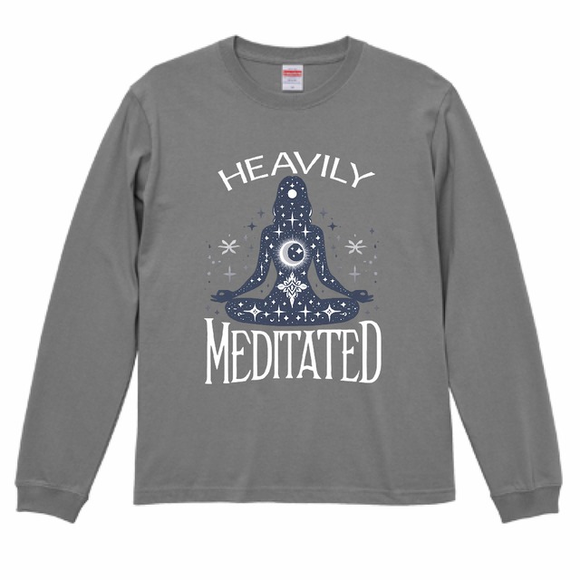 星空ヨガ長袖Tシャツ|Heavily Meditated|深い瞑想・スピリチュアルアート|癒し・マインドフルネスデザイン|ストーングレー