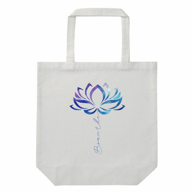宇宙 ロータス ヨガ・キャンバストートバッグ(M)|呼吸・瞑想・スピリチュアル|Breatheギャラクシー蓮デザイン|ライトブルー