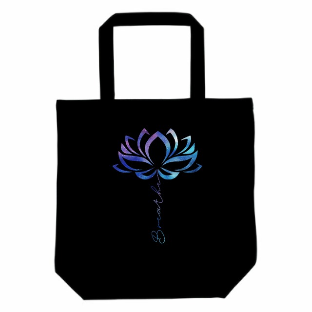 宇宙 ロータス ヨガ・キャンバストートバッグ(M)|呼吸・瞑想・スピリチュアル|Breatheギャラクシー蓮デザイン|ブラック
