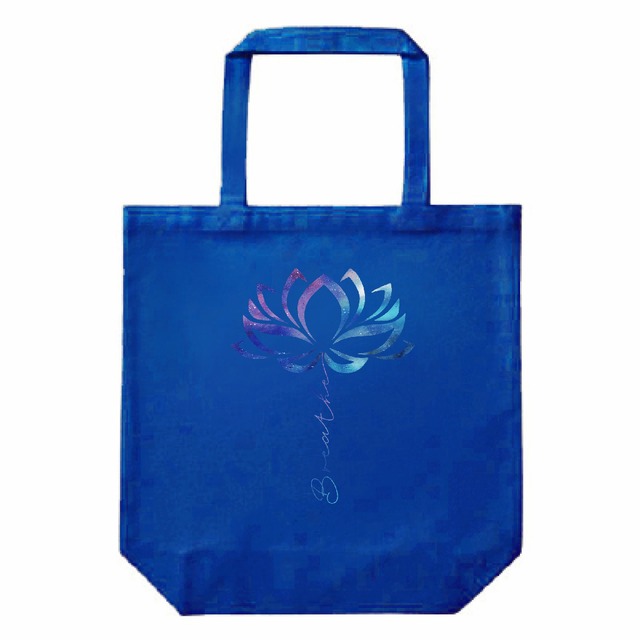 宇宙 ロータス ヨガ・キャンバストートバッグ(M)|呼吸・瞑想・スピリチュアル|Breatheギャラクシー蓮デザイン|ロイヤルブルー