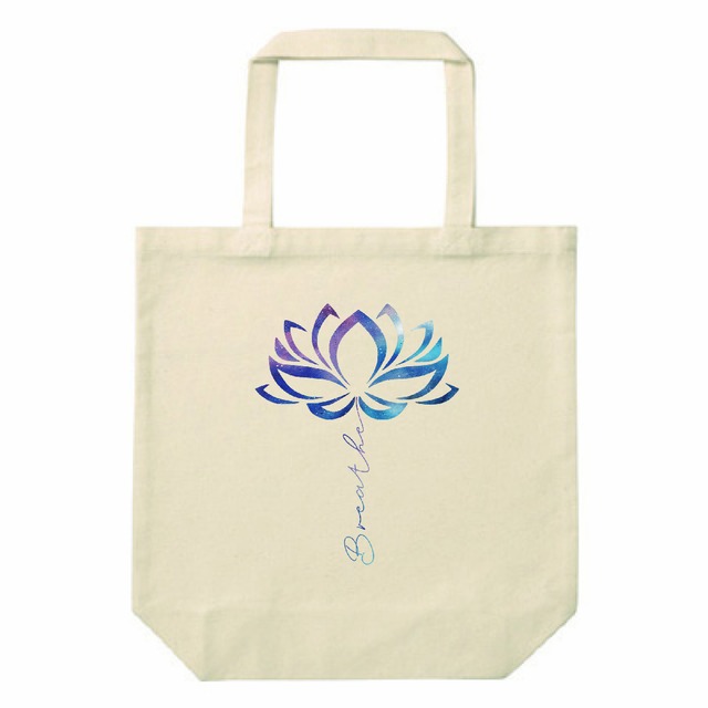 宇宙 ロータス ヨガ・キャンバストートバッグ(M)|呼吸・瞑想・スピリチュアル|Breatheギャラクシー蓮デザイン|ナチュラル