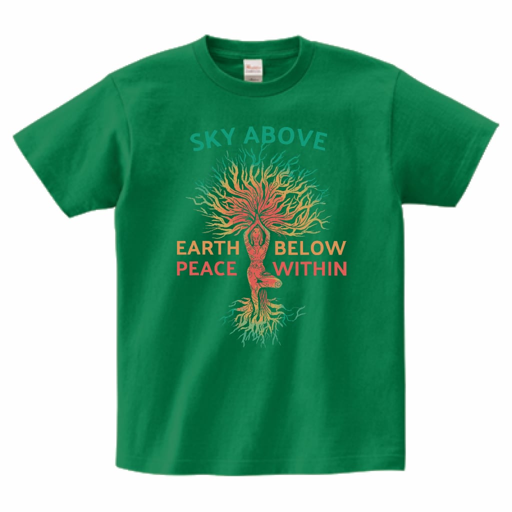 自然調和ヨガTシャツ|自然と調和するスピリチュアルデザイン|瞑想・心の安定・癒し|グリーン