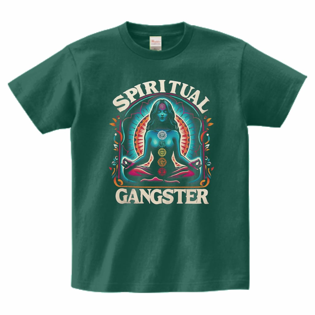 スピリチュアル ヨガTシャツ|Spiritual Gangster|チャクラ・瞑想・サイケデリックアート|癒し・エンパワーメント|アイビーグリーン