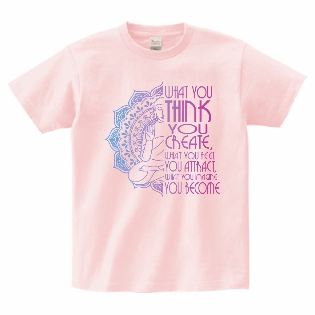 引き寄せ アファメーション ヨガTシャツ|What You Think You Create|仏陀・マンダラ・スピリチュアルデザイン|瞑想・癒し|ライトピンク