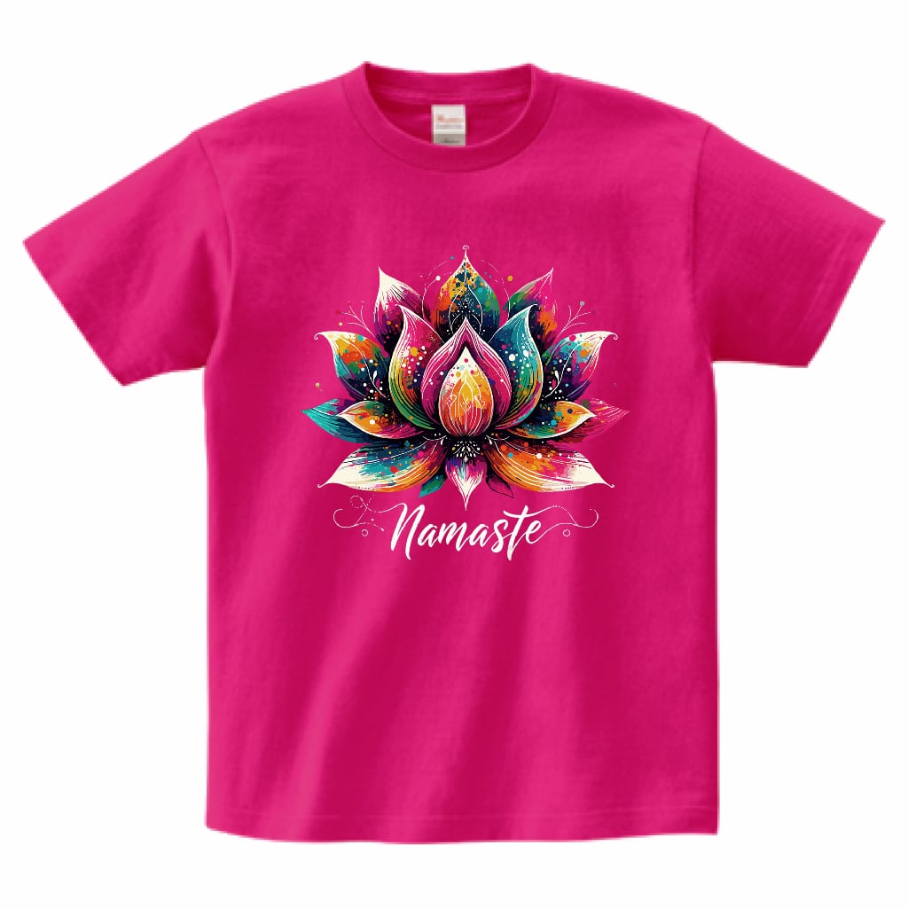 ナマステ 蓮の花アートTシャツ|極彩色ロータス|Namaste・ヨガ・瞑想・スピリチュアル・癒しデザイン|ホットピンク