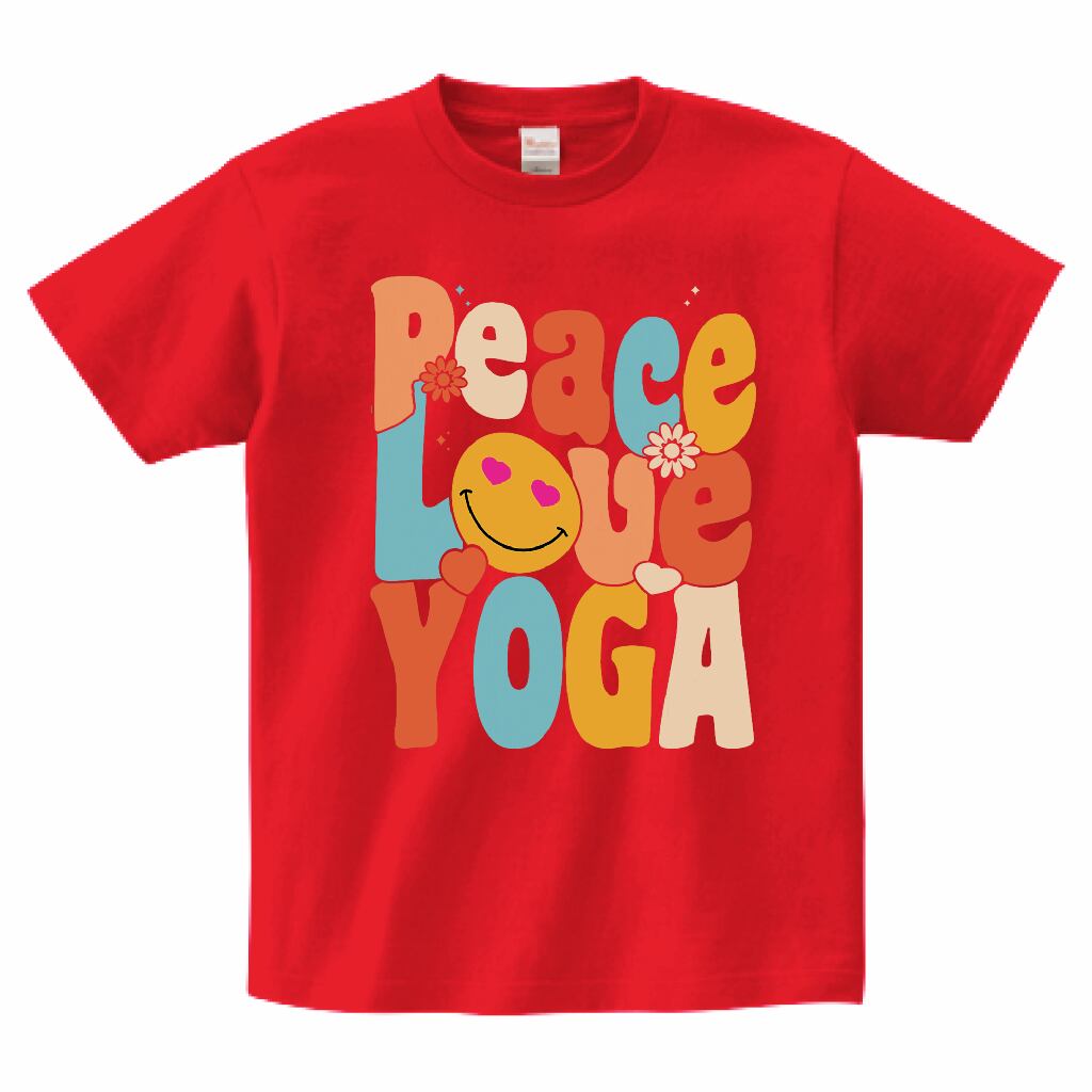 ピース・ラブ・ヨガ・レトロデザインTシャツ|ヨガ・ピラティス・スマイル・ポジティブメッセージ|Peace Love Yoga|レッド