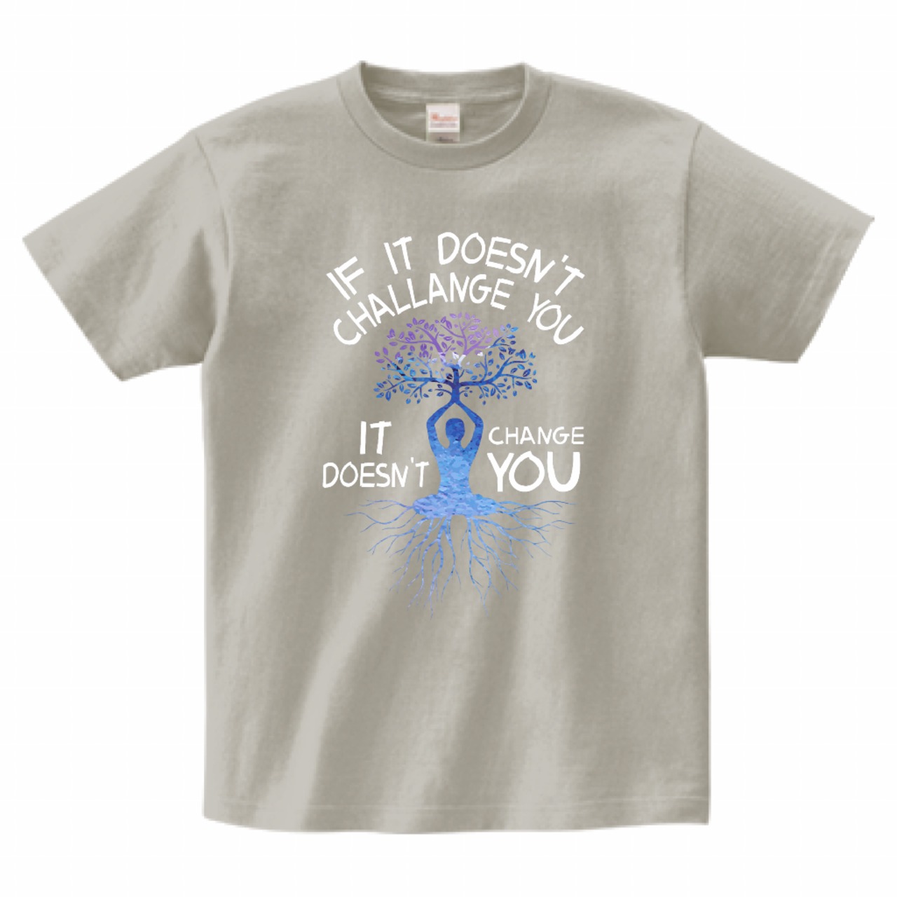 ヨガ ツリーポーズ Tシャツ|If It Doesn't Challenge You It Doesn't Change You|自己成長・フィットネス・名言デザイン|シルバーグレイ