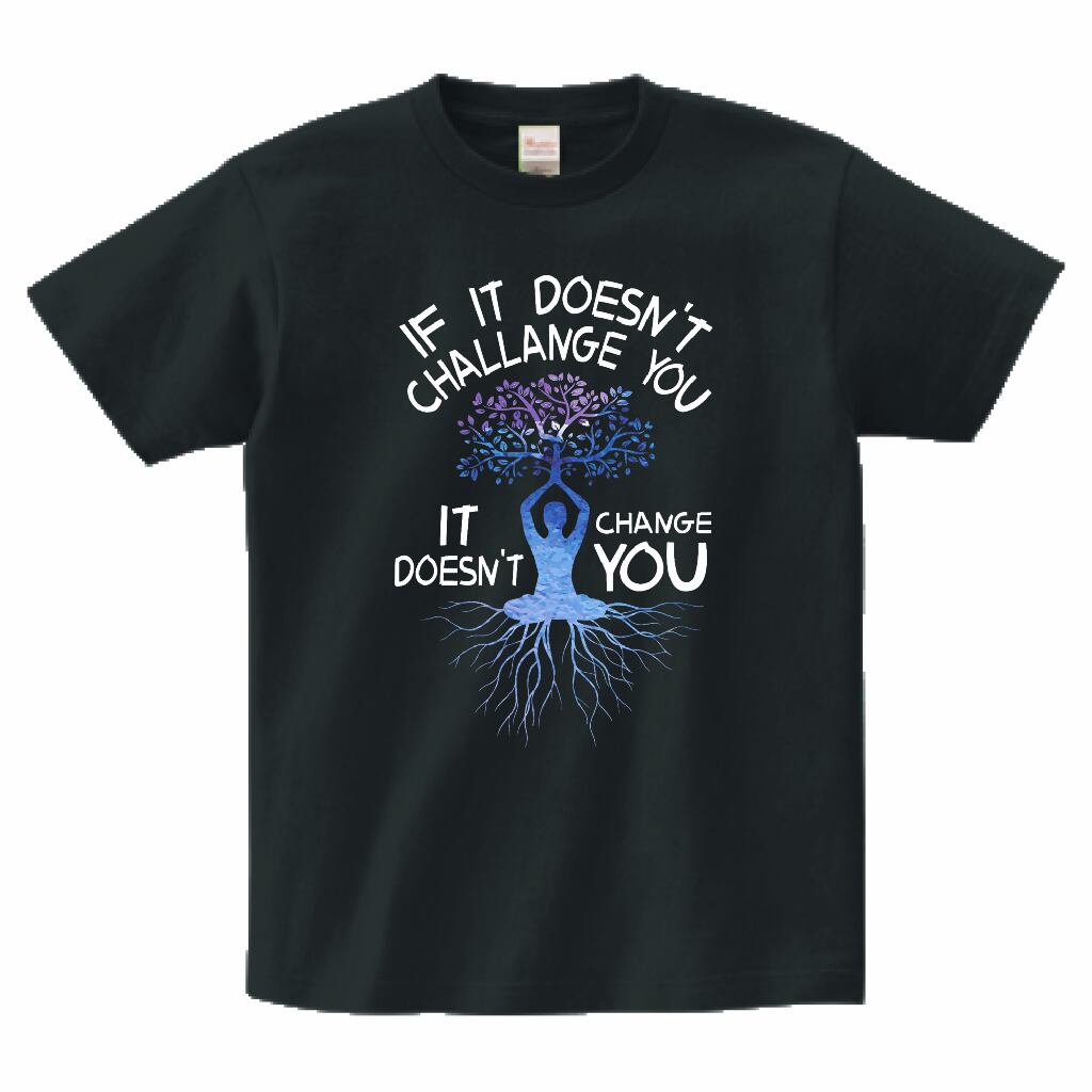 ヨガ ツリーポーズ Tシャツ|If It Doesn't Challenge You It Doesn't Change You|自己成長・フィットネス・名言デザイン|ブラック