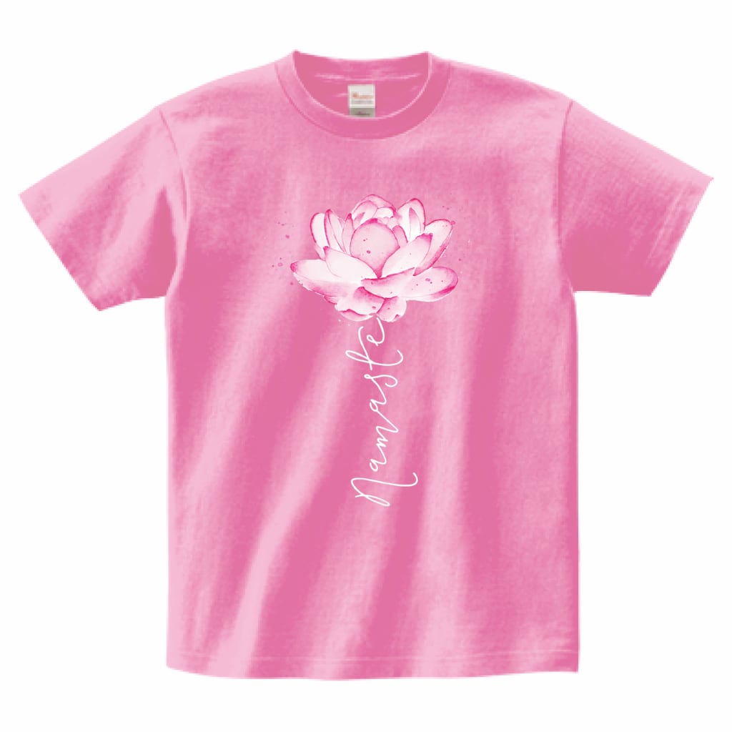 ナマステ 蓮の花 ロータスTシャツ|ヨガ・瞑想・スピリチュアル|Namaste水彩アート フラワーデザイン|ピンク