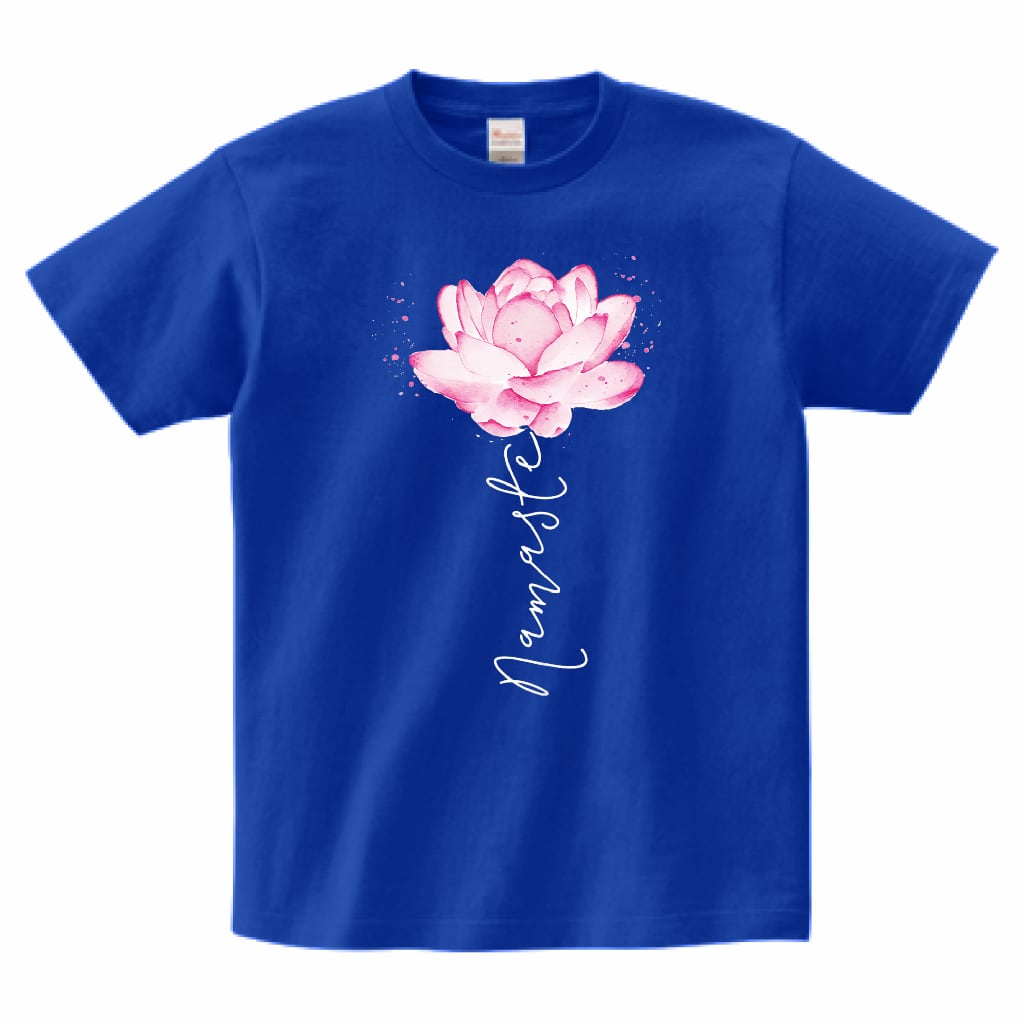 ナマステ 蓮の花 ロータスTシャツ|ヨガ・瞑想・スピリチュアル|Namaste水彩アート フラワーデザイン|ロイヤルブルー