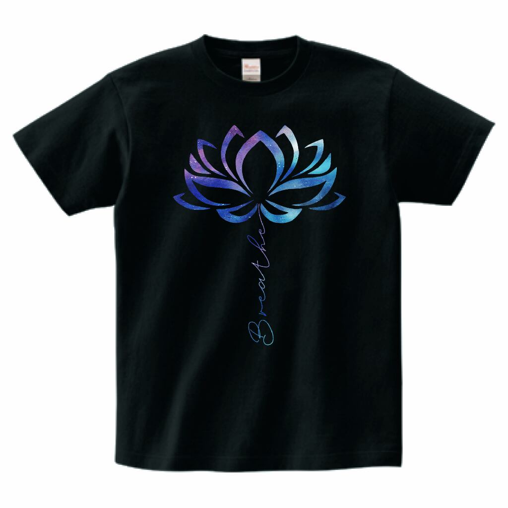 宇宙色のロータス × “Breathe” のメッセージ。心が整うヨガデザインTシャツ