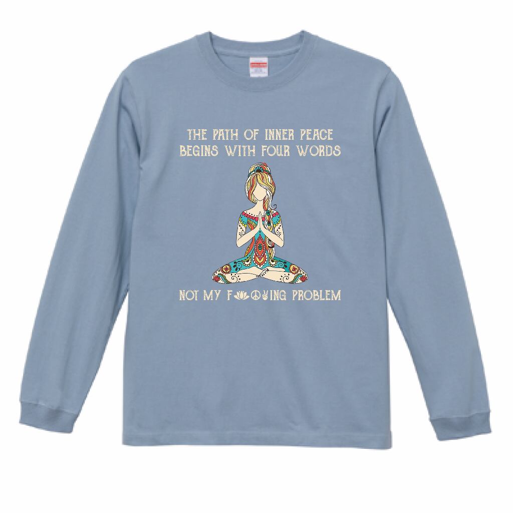 ヨガ長袖Tシャツ|The Path of Inner Peace|癒し・スピリチュアル・ボヘミアンデザイン|アシッドブルー