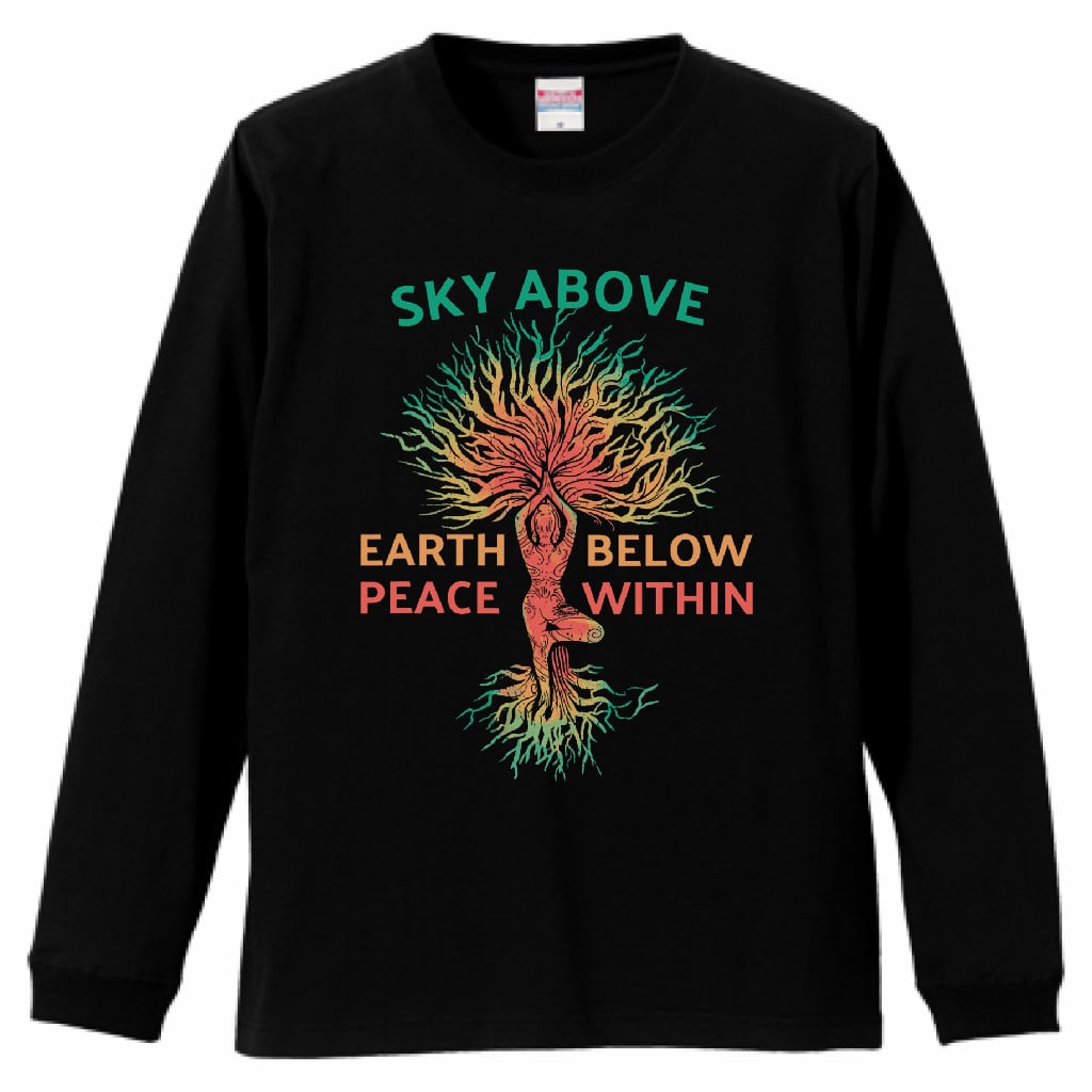 自然調和ヨガ長袖Tシャツ|自然と調和するスピリチュアルデザイン|瞑想・心の安定・癒し|ブラック