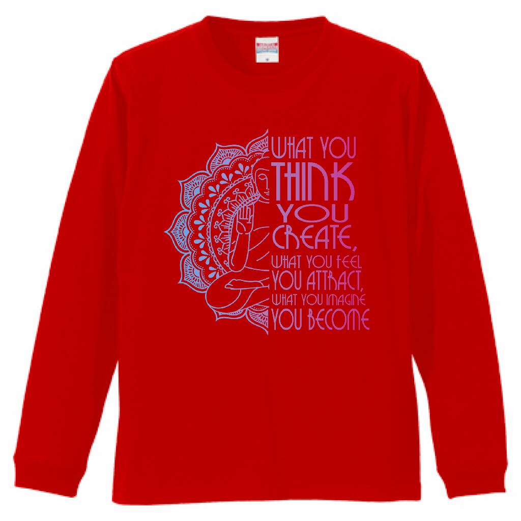 引き寄せ アファメーション ヨガ長袖Tシャツ|What You Think You Create|仏陀・マンダラ・スピリチュアルデザイン|瞑想・癒し|レッド