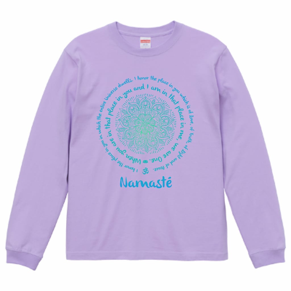ナマステ マンダラ アート長袖Tシャツ|ヨガ・瞑想・スピリチュアル|Namaste・癒し・内なる平和デザイン|ライトパープル