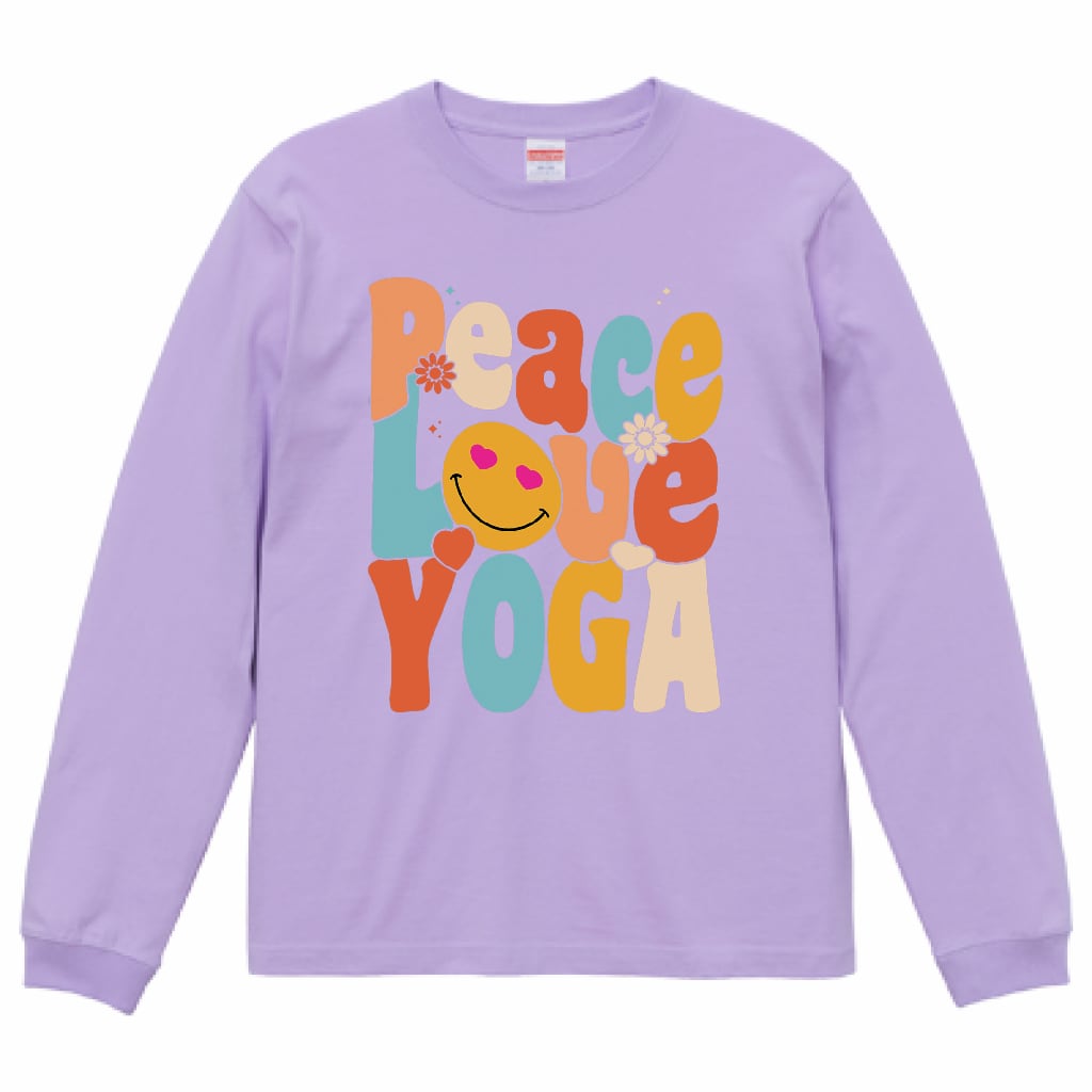 ピース・ラブ・ヨガ・レトロデザイン長袖Tシャツ|ヨガ・ピラティス・スマイル・ポジティブメッセージ|Peace Love Yoga|ライトパープル