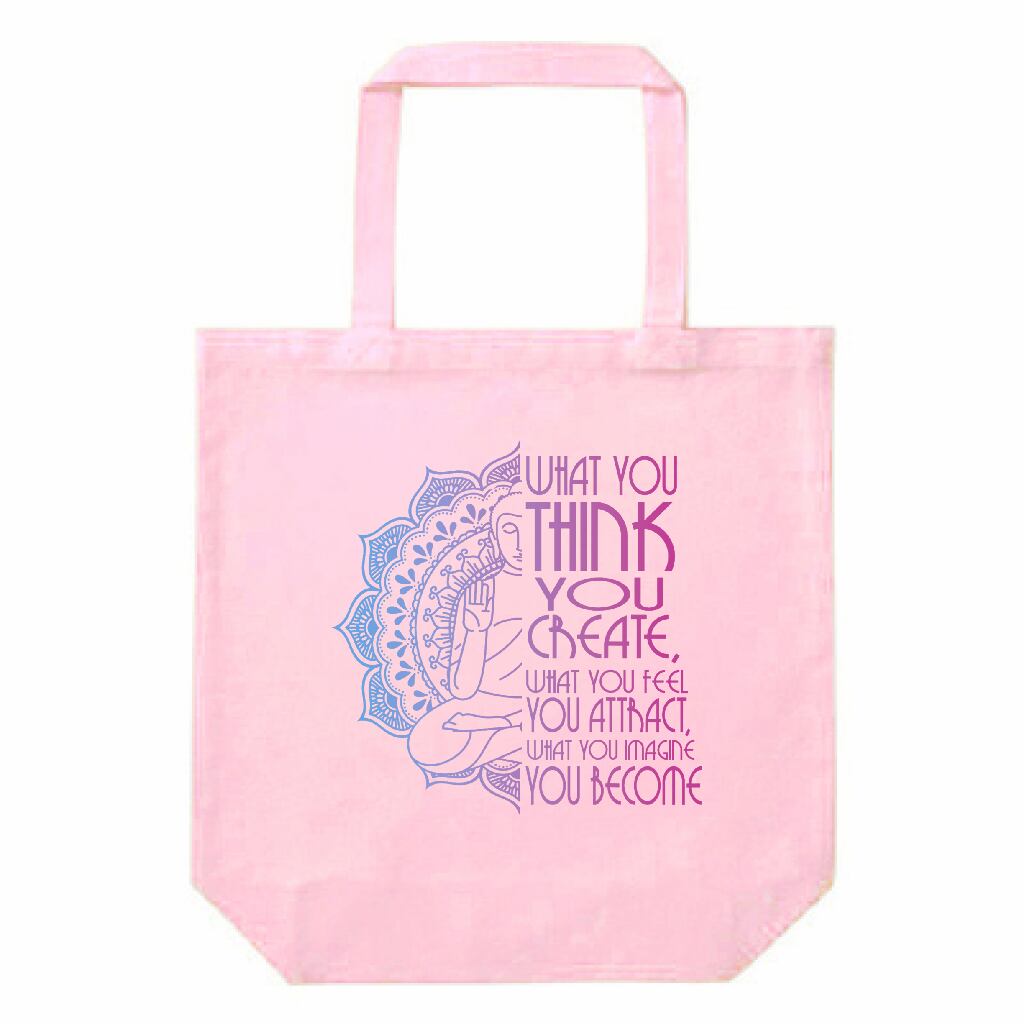 引き寄せ アファメーション キャンバストートバッグ(M)|仏陀・マンダラ・スピリチュアルデザイン|瞑想・癒し|ライトピンク