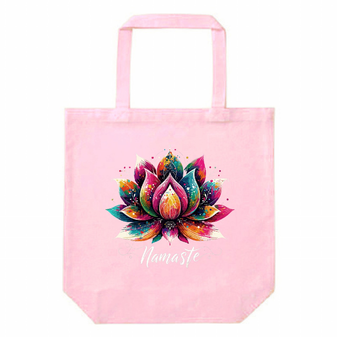 ナマステ 蓮の花アート・キャンバストートバッグ(M)|極彩色ロータス|Namaste・ヨガ・瞑想・スピリチュアル・癒しデザイン|ライトピンク