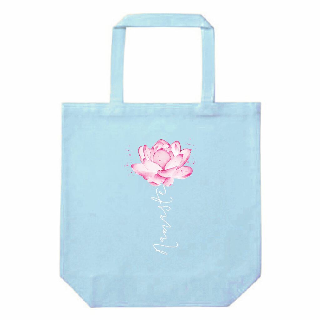 ナマステ 蓮の花 ロータス・キャンバストートバッグ(M)|ヨガ・瞑想・スピリチュアル|Namaste水彩アート フラワーデザイン|ライトブルー