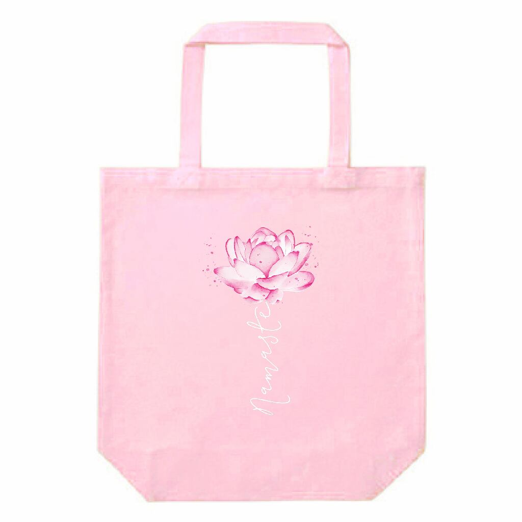 ナマステ 蓮の花 ロータス・キャンバストートバッグ(M)|ヨガ・瞑想・スピリチュアル|Namaste水彩アート フラワーデザイン|ライトピンク
