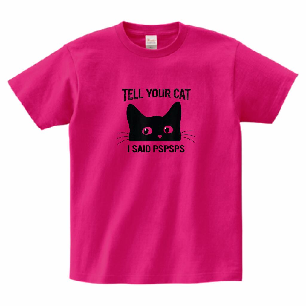 猫好き必見 ユーモアアートTシャツ|Tell Your Cat I Said PSPSPS|黒猫 ミニマル イラスト・雑貨|黒猫 イラスト グッズ|ホットピンク