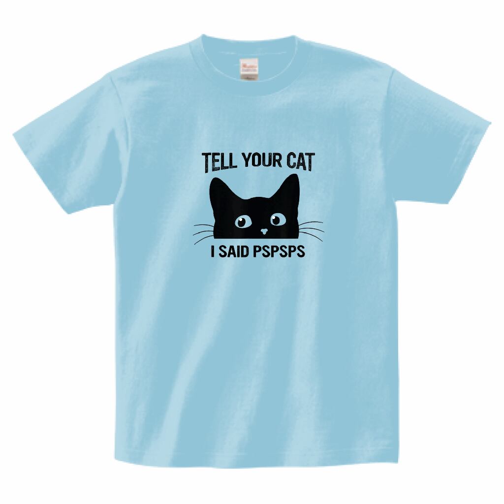 猫好き必見 ユーモアアートTシャツ|Tell Your Cat I Said PSPSPS|黒猫 ミニマル イラスト・雑貨|黒猫 イラスト グッズ|ライトブルー