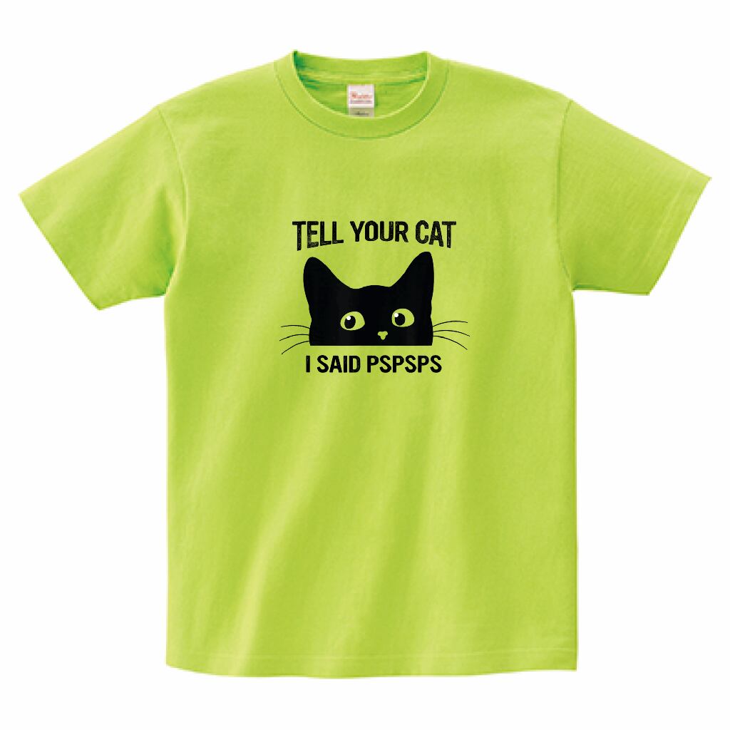 猫好き必見 ユーモアアートTシャツ|Tell Your Cat I Said PSPSPS|黒猫 ミニマル イラスト・雑貨|黒猫 イラスト グッズ|ライトグリーン