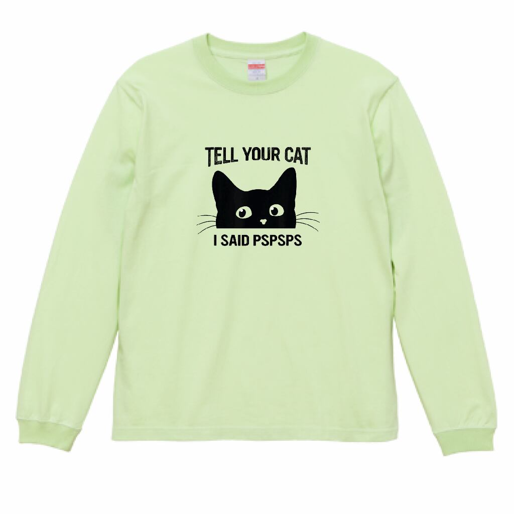 猫好き必見 ユーモアアート長袖Tシャツ|Tell Your Cat I Said PSPSPS|黒猫 ミニマル イラスト・雑貨|黒猫 イラスト グッズ|ミルキーライム