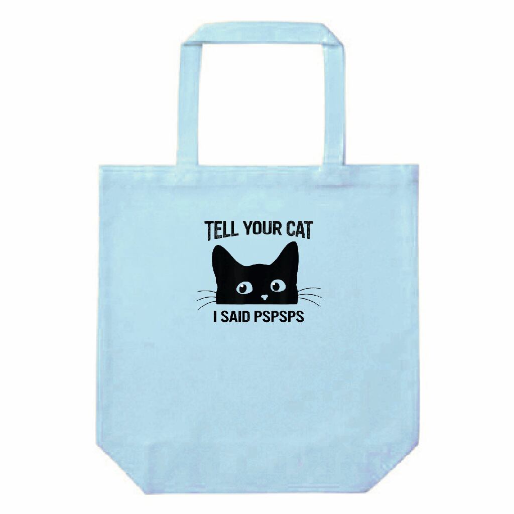 猫好き必見 ユーモアアート|12ozキャンバストートバッグ(M)|Tell Your Cat I Said PSPSPS|黒猫 ミニマル イラスト・雑貨|黒猫グッズ|ライトブルー