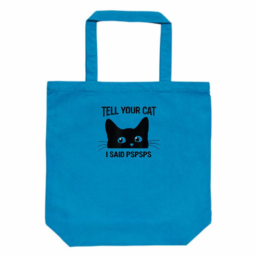 猫好き必見 ユーモアアート|12ozキャンバストートバッグ(M)|Tell Your Cat I Said PSPSPS|黒猫 ミニマル イラスト・雑貨|黒猫グッズ|ターコイズ
