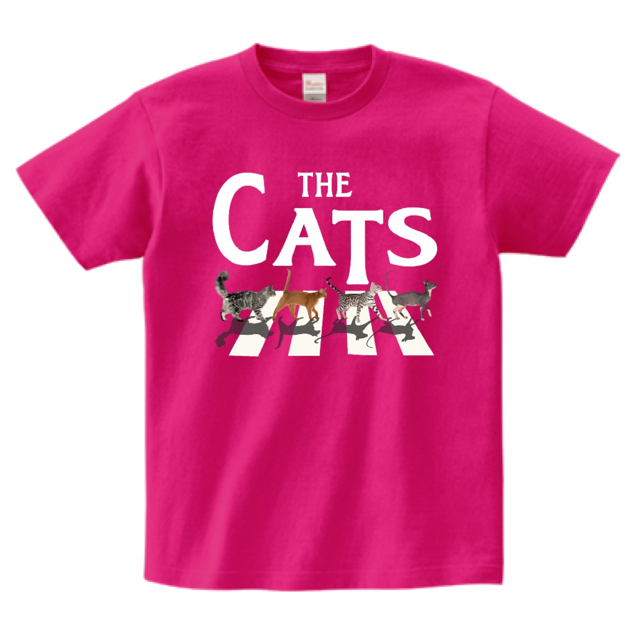横断歩道風 猫アート グッズ|猫好き必見 THE CATS デザイン|猫 イラスト Tシャツ・雑貨|猫好き ポップアート|ホットピンク