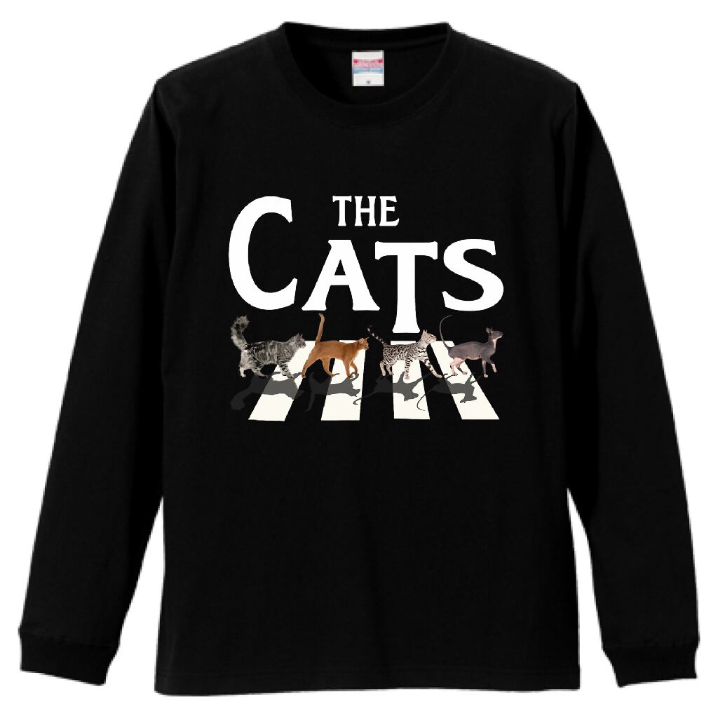 横断歩道風 猫アート グッズ|猫好き必見 THE CATS デザイン|猫 イラスト 長袖Tシャツ・雑貨|猫好き ポップアート|ブラック