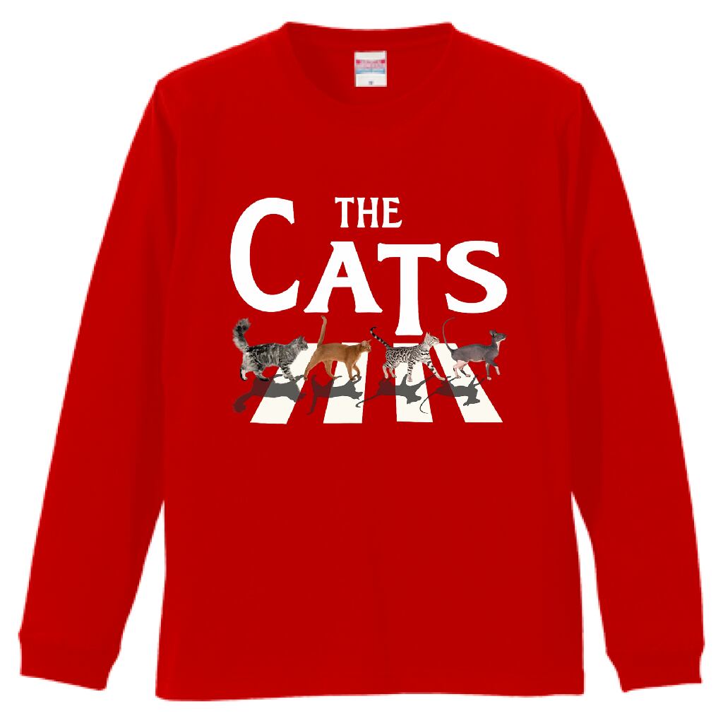横断歩道風 猫アート グッズ|猫好き必見 THE CATS デザイン|猫 イラスト 長袖Tシャツ・雑貨|猫好き ポップアート|レッド