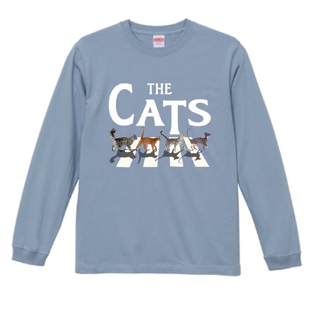 横断歩道風 猫アート グッズ|猫好き必見 THE CATS デザイン|猫 イラスト 長袖Tシャツ・雑貨|猫好き ポップアート|アシッドブルー