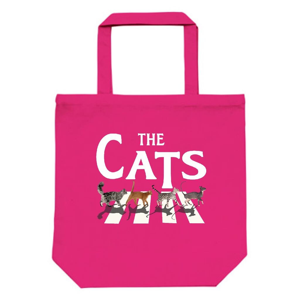 横断歩道風 猫アート グッズ|猫好き必見 THE CATS デザイン|猫 イラスト 12ozキャンバストートバッグ(M)・雑貨|猫好き ポップアート|ホットピンク